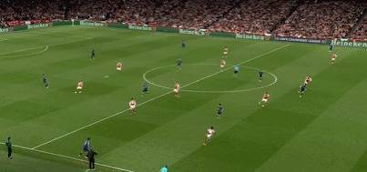 首回合的胜利近在目前,巴黎球迷卓绝振奋,全场大喊;阿森纳球迷则是眉头紧皱,一言不发,两队球迷造成赫然对比。